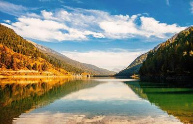 Keywords: landscape serene autumn water reflection clouds sky mountains natural nature outdoors scenic scenery peaceful river calm