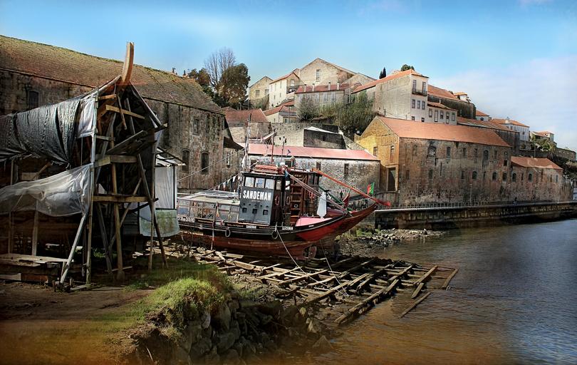 Keywords: landscape urbana shipyard porto river douro ribeira vessel wooden boat