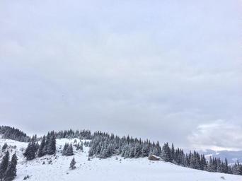 Keywords: landscape winter snow sky mountain nature trees blizzard forest pose rime frost the haze snowflakes ice cold cloud