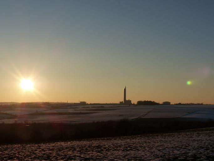 | Keywords: landscape wintry arable field cultivation agriculture winter snow cold grain silo sunset schapfe mill flour mill jungingen ulm swabian alb highest grain silo world record record german architecture award architecture building silo memory tower |