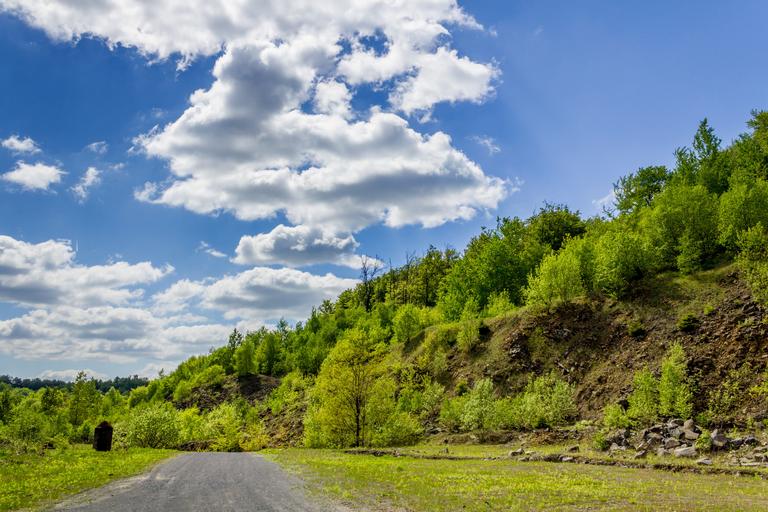 Keywords: lane landscape trees clouds nature rest summer green idyll hill nature reserve mirroring
