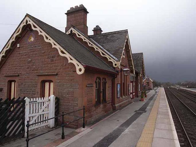 Keywords: 54 42N 2 40W Langwathby railway station is a railway station which serves the village of Langwathby in Cumbria, England. Opened 1876. Attribution: Oliver Dixon