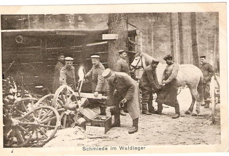 Keywords: Lanięta 1915.JPG pl Kuźnia w lesie pod Łaniętami w okolicach Przasnysza w 1915 roku Żołnierze niemieccy Zbiory Mirosława Krejpowicza Feldpostkarte 1915 PD-old Battles of Przasnysz Gmina Krzynowłoga Mała Forges in Masovian Voivodeship LŁanięta |