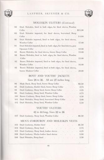 Keywords: Lanpher Furs - Season of 1910 - Lanpher, Skinner & Co Saint Paul 89.jpg Lanpher Furs Season of 1910 Lanpher Skinner Co Saint Paul 88 90 Lanpher Furs - Season of 1910 - Lanpher Skinner Co Saint Paul Men's fur clothing Children with fur Wombat clothing Sheepskin clothing Fur linings Opossum clothing Musquash clothing |