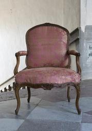 Keywords: Länstol, 1750 cirka - Skoklosters slott - 103891.tif LSH artwork H Amand möbelsnickare sv Svängda ben med käl och bandomlindade vulstknippen som direkt övergår i sargen på samma sätt dekorerad ram till stoppad konturerad rygg Mitt på sargens framsida och på ryggens överstycke skulpterade rosor och rocailler <br/>Utåtsvängda armstöd med stoppning Sits och rygg samt armstödens stoppning klädda med rött-gulmönstrat fibertyg bomull och obearbetad fiber av manillahampa <br/>Klädseln spikad med mässingstännlikor <br/>Omkring 1700-talets mitt <br/>Tygklädseln från ca 1840 <br/>Stämplade på ena ryggstolpens baksida ME H AMAND menusier ebeniste Paris <br/>Märkta <br/>1775 1 På sargens bakre insida J med blyerts <br/>1775 2 På sargens främre insida I samt oläslig skrift med blyerts på vänstra och högra insidan xe <br/>1775 3 Märkt s 1775 2 men Ret på vänstra insidan <br/>1775 4 På sargens främre insida I på dess vänstra insida + med blyerts På sidornas insida inristat romb <br/>1775 5 På sargens främre insida I med blyerts <br/>1775 6 På sargens främre insida x med svart färg tre ggr På sidornas insida 3 med blyerts På bakre insidan L original caption Länstol 1750 cirka <br/> Nyckelord Fåtöljer Föremålsbild ca 1750 size mm 760 700 1020 SKO M E place of origin original filename sm_dig11809 23029 inventory number SKO 1775 103891 CC-BY-SA Jenny Bergensten <gallery caption Different images of same object > File Undersidan av stol - Skoklosters slott - 103893 tif File Fåtölj - Skoklosters slott - 103909 tif File Fåtölj 1750 cirka - Skoklosters slott - 103912 tif File Fåtölj undersidan 1750 cirka - Skoklosters slott - 103913 tif File Fåtölj - Skoklosters slott - 103910 tif File Undersidan av stol - Skoklosters slott - 103896 tif File Möbeltyg 1840 cirka - Skoklosters slott - 103898 tif File Undersidan av sits - Skoklosters slott - 103917 tif File Möbeltyg 1840 cirka - Skoklosters slott - 103899 tif File Länstol - Skoklosters slott - 103890 tif File Undersidan av stol - Skoklosters slott - 103897 tif File Länstol - Skoklosters slott - 103888 tif File Fåtölj undersidan - Skoklosters slott - 103915 tif File Undersidan av stol - Skoklosters slott - 103895 tif File Länstol - Skoklosters slott - 103889 tif File Fåtölj från sidan 1750 cirka - Skoklosters slott - 103911 tif File Stol med randigt möbelöverdrag - Skoklosters slott - 98198 tif File Underdel av länstol 1750 cirka - Skoklosters slott - 103892 tif File Undersidan av stol - Skoklosters slott - 103894 tif File Fåtölj undersidan - Skoklosters slott - 103916 tif File Valnötsstol med mönstrat fibertyg bomull och obearbetad fiber av manillahampa från 1750 - Skoklosters slott - 98199 tif File Fåtölj undersidan 1750 cirka - Skoklosters slott - 103914 tif </gallery> Armchairs Chairs Jenny Bergensten Media contributed by LSH unmatched creator Media contributed by LSH 2015-11