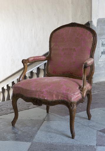 Keywords: Länstol - Skoklosters slott - 103888.tif LSH artwork H Amand möbelsnickare sv Svängda ben med käl och bandomlindade vulstknippen som direkt övergår i sargen på samma sätt dekorerad ram till stoppad konturerad rygg Mitt på sargens framsida och på ryggens överstycke skulpterade rosor och rocailler <br/>Utåtsvängda armstöd med stoppning Sits och rygg samt armstödens stoppning klädda med rött-gulmönstrat fibertyg bomull och obearbetad fiber av manillahampa <br/>Klädseln spikad med mässingstännlikor <br/>Omkring 1700-talets mitt <br/>Tygklädseln från ca 1840 <br/>Stämplade på ena ryggstolpens baksida ME H AMAND menusier ebeniste Paris <br/>Märkta <br/>1775 1 På sargens bakre insida J med blyerts <br/>1775 2 På sargens främre insida I samt oläslig skrift med blyerts på vänstra och högra insidan xe <br/>1775 3 Märkt s 1775 2 men Ret på vänstra insidan <br/>1775 4 På sargens främre insida I på dess vänstra insida + med blyerts På sidornas insida inristat romb <br/>1775 5 På sargens främre insida I med blyerts <br/>1775 6 På sargens främre insida x med svart färg tre ggr På sidornas insida 3 med blyerts På bakre insidan L original caption Länstol<br/> Nyckelord Fåtöljer Inredning Föremålsbild ca 1750 size mm 760 700 1020 SKO M E place of origin original filename sm_dig11806 23029 inventory number SKO 1775 103888 CC-BY-SA Jenny Bergensten <gallery caption Different images of same object > File Undersidan av stol - Skoklosters slott - 103893 tif File Fåtölj - Skoklosters slott - 103909 tif File Fåtölj 1750 cirka - Skoklosters slott - 103912 tif File Länstol 1750 cirka - Skoklosters slott - 103891 tif File Fåtölj undersidan 1750 cirka - Skoklosters slott - 103913 tif File Fåtölj - Skoklosters slott - 103910 tif File Undersidan av stol - Skoklosters slott - 103896 tif File Möbeltyg 1840 cirka - Skoklosters slott - 103898 tif File Undersidan av sits - Skoklosters slott - 103917 tif File Möbeltyg 1840 cirka - Skoklosters slott - 103899 tif File Länstol - Skoklosters slott - 103890 tif File Undersidan av stol - Skoklosters slott - 103897 tif File Fåtölj undersidan - Skoklosters slott - 103915 tif File Undersidan av stol - Skoklosters slott - 103895 tif File Länstol - Skoklosters slott - 103889 tif File Fåtölj från sidan 1750 cirka - Skoklosters slott - 103911 tif File Stol med randigt möbelöverdrag - Skoklosters slott - 98198 tif File Underdel av länstol 1750 cirka - Skoklosters slott - 103892 tif File Undersidan av stol - Skoklosters slott - 103894 tif File Fåtölj undersidan - Skoklosters slott - 103916 tif File Valnötsstol med mönstrat fibertyg bomull och obearbetad fiber av manillahampa från 1750 - Skoklosters slott - 98199 tif File Fåtölj undersidan 1750 cirka - Skoklosters slott - 103914 tif </gallery> Armchairs Interiors Chairs Jenny Bergensten Media contributed by LSH unmatched creator Media contributed by LSH 2015-11