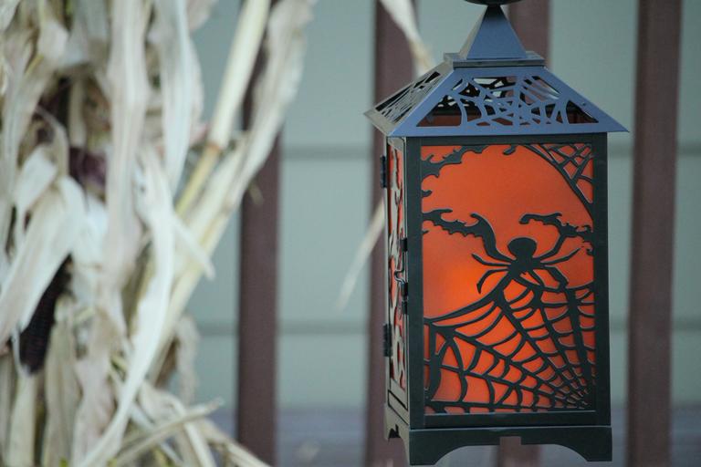Keywords: lantern halloween orange spooky corn october holiday autumn fall spider web