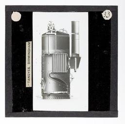 | Keywords: Lantern Slide - Tangyes Ltd, Cross-Section of Vertical Water Tube Boiler, circa 1910.jpg Cross-section of a Tangye's vertical water tube boiler Size mm 83 83 3 exhibition history Text printed in black ink on white adhesive paper label over black mask TANGYES BIRMINGHAM Institution Museum Victoria Lantern Slide Standard 3¼ in x 3¼ in Black White object history One of 239 glass lantern slides depicting products manufactured by Tangyes Limited engineers of Birmingham England The images include various products such as engines centrifugal pumps hydraulic pumps gas producers materials testing machines presses machine tools hydraulic jacks etc Tangyes was a company which operated from 1857 to 1957 They produced a wide variety of engineering products exported worldwide including Australia and other British colonies It is thought that this collection of magic lantern slides was used by a local agent for sales purposes These images were originally used to illustrate Tangyes Ltd product catalogues from the period 1910 - circa 1920s PD-Australia author http //collections museumvictoria com au/items/803522 Info http //collections museumvictoria com au/content/media/17/433817-original jpg Image Uploaded with GWToolset Lantern Slide - Tangyes Ltd Cross-Section of Vertical Water Tube Boiler circa 1910 http //collections museumvictoria com au/content/media/17/433817-original jpg Tangyes Lantern Slide Collection Vertical boilers Water-tube boilers |