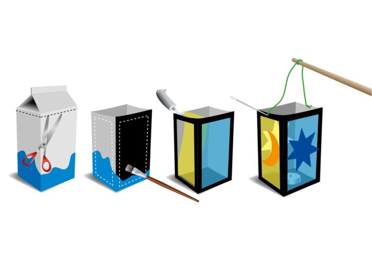 Keywords: lantern tinker milk carton light brush adhesive scissors record moon star october november autumn light golden autumn decoration children lamp tealight blue yellow torch procession martin moving