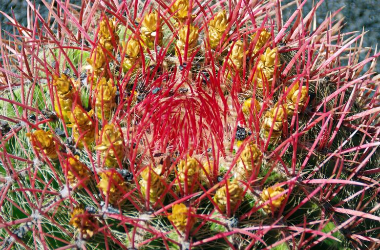Keywords: lanzarote cactus flower orange red thorns quills canary plant botany petals exotic flower