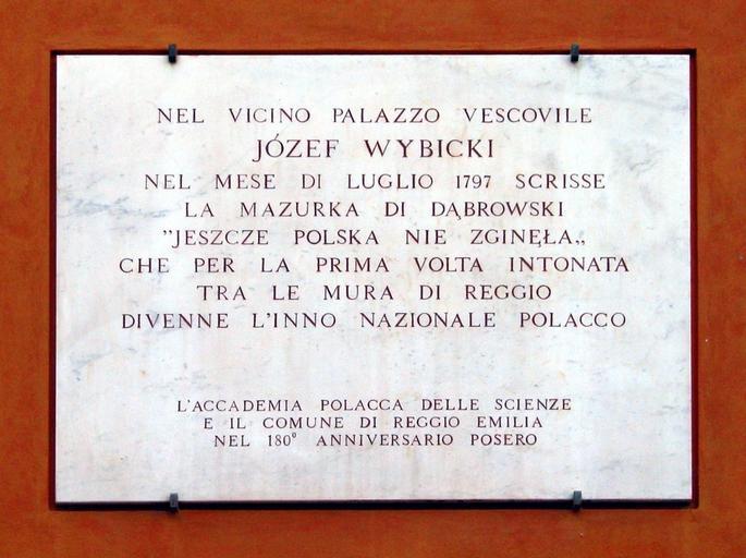 Keywords: Lapide Wybicki.jpg it Lapide commemorativa della composizione dell'inno polacco di Józef Wybicki a Reggio nell'Emilia nel luglio del 1797 en Plaque commemorating the composition of the Polish national anthem by Józef Wybicki in Reggio nell'Emilia Italy in July 1797 Tablica upamiętniająca napisanie polskiego hymnu narodowego przez Józefa Wybickiego w Reggio nell'Emilia we Włoszech w lipcu 1797 r Own User Andrea Botteghelz 2008-09-11 Testo della lapide Nel vicino palazzo vescovile Józef Wybicki nel mese di luglio 1797 scrisse la Mazurka di Dąbrowski Jeszcze Polska nie zginęła La Polonia non è ancora scomparsa che per la prima volta intonata tra le mura di Reggio divenne l'inno nazional polacco L'Accademia Polacca delle Scienze e il commune di Reggio Emilia nel 180° anniversario posero Text of the plaque In the nearby episcopal palace Józef Wybicki in the month of July 1797 wrote Dąbrowski's Mazurka Jeszcze Polska nie zginęła Poland Is Not Yet Lost which first intoned within the walls of Reggio became the Polish national anthem Polish Academy of Sciences and the commune of Reggio Emilia on the 180th anniversary Texte de la plaque Dans le palais épiscopal proche Józef Wybicki en mois de juillet 1797 écrivit la Mazurka de Dąbrowski Jeszcze Polska nie zginęła La Pologne n'a pas encore péri qui entonné pour la première fois à l'intérieur des murs de Reggio devint l'hymne national polonais Académie Polonaise des Sciences et la commune de Reggio d'Émilie le jour du 180<sup>e</sup> anniversaire Treść tablicy W pobliskim pałacu biskupim Józef Wybicki w lipcu 1797 r napisał Mazurek Dąbrowskiego Jeszcze Polska nie zginęła który po raz pierwszy zaintonowany w obrębie murów Reggio stał się polskim hymnem narodowym Polska Akademia Nauk i gmina Reggio Emilia w 180 rocznicę Cisalpine republic Monuments and memorials to Józef Wybicki Mazurek Dąbrowskiego Plaques in Reggio Emilia Reggio Emilia 1797 |