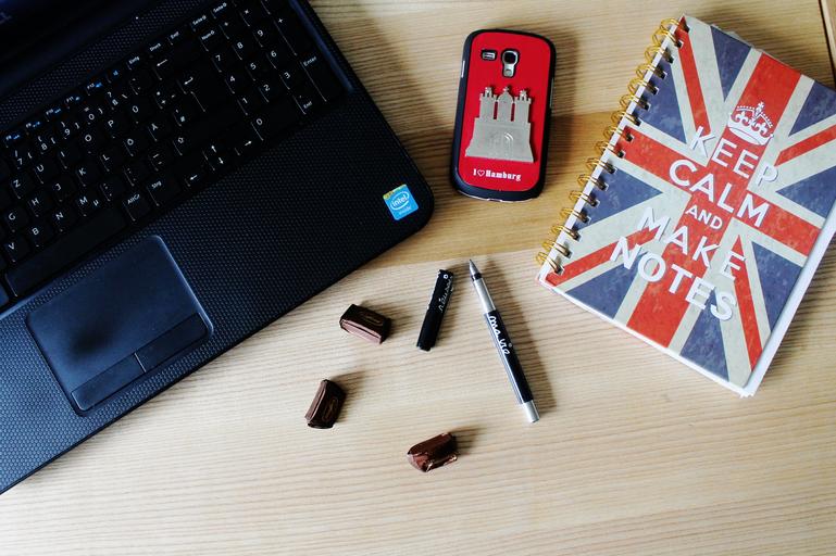 Keywords: laptop mobile phone cellphone notebook book filler leave write down diary booklet notes paper bindung office empty pages writing tool pen note accessories table calendar chocolates candy