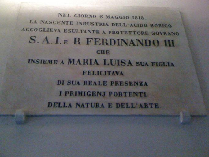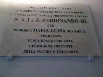 | Keywords: Larderello Ferdinando III.JPG it Lapide a memoria della visita di it Ferdinando III di Toscana e della figlia Maria Luisa agli stabilimenti di Larderello own Mmm448 Larderello Ferdinand III Grand Duke of Tuscany Plaques referencing 1818 Plaques in Tuscany Larderello 6 May 1818 |