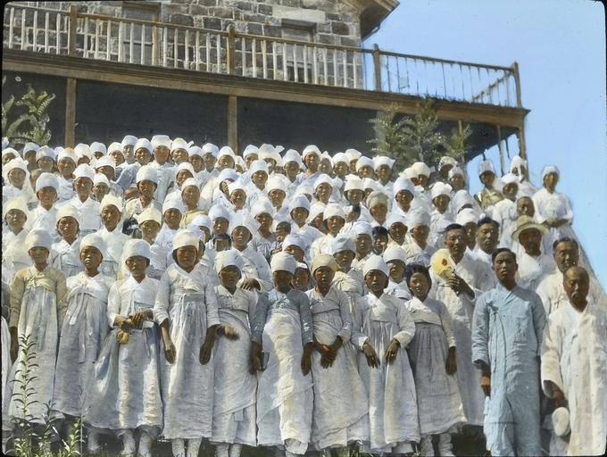 | Keywords: Large Bible Institute group, Korea, (s.d.) (Taylor box21num49b).jpg en <br> Large Bible Institute group Korea s d Once a year Korean men and women gather into Bible Institutes for a week to ten days of training They come in large numbers and some walk long distances The total attendance for all the Missions in Korea reaches about 50 000 a year Pictured here is a Women's Institute Date created 1908/1922 Publisher of the Digital Version University of Southern California Libraries Repository Name Methodist Church U S Legacy Record ID kda-m116 Photographer Methodist Episcopal Church Format photograph Rights Neither the General Conference nor any General Agency of The United Methodist Church successor to the Methodist Episcopal Church claims any interest in the photos or images Filename Taylor_box21num49a; Taylor_box21num49b Part of collection Korean Digital Archive Coverage date 1908/1922 Contributing entity University of Southern California Repository Address Nashville Tennessee Contributor Taylor Ewing Bevard Type images Part of subcollection The Reverend Corwin Nellie Taylor Collection Geographic Subject Country Korea Compiler Taylor Corwin; Blood-Taylor Nellie 1908/1922 Methodist Episcopal Church http //digitallibrary usc edu/cdm/ref/collection/p15799coll48/id/2229 220px left PD-Japan-oldphoto Korean archive in the USC digital library Images from USC Digital Library uploaded by Fæ |