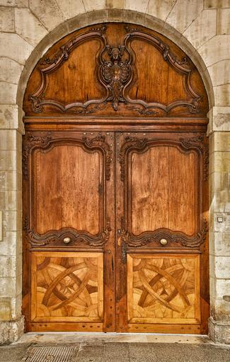 Keywords: larochelle france chamber of commerce building door architecture hdr wood wooden