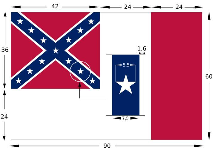 Keywords: Last Confederate (specifications).svg Specifications of the last Confederate flag 2006-03-08 own assumed Fornax Blue red white flags US Confederacy Flag construction sheets of the United States US Confederacy Flags with cantons US Confederacy Flags with saltires US Confederacy Flags with stars canton US Confederacy Flags with thirteen stars US Confederacy Flags with white five-pointed stars US Confederacy SVG flags of the Confederate States of America SVG flag construction sheets US Confederacy
