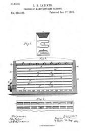 Keywords: Latimer Pat252386 FirstPage.jpg Erste Seite Zeichnung des US-Patents 253 386 Process of manufacturing Carbons von Lewis H Latimer http //www google com/patents id 5nBWAAAAEBAJ pg PA1 v onepage q f false PatentUS 1882 1882 Lewis H Latimer 1848-1928 PD-old Original upload log de wikipedia Latimer+Pat252386+FirstPage jpg 2009-01-06 13 50 Hgn-p 2080×3009× 883748 bytes <nowiki> Information Erste Seite Zeichnung aus US-Patent 253 386 Lewis H Latimer US-Patent von 1882 JPG-File-Creator User hgn-p; Orginal Lewis H Latimer 1882 gest 1928 1882 Andere Versionen </nowiki> History of electricity Incandescent light bulbs Lewis Howard Latimer |