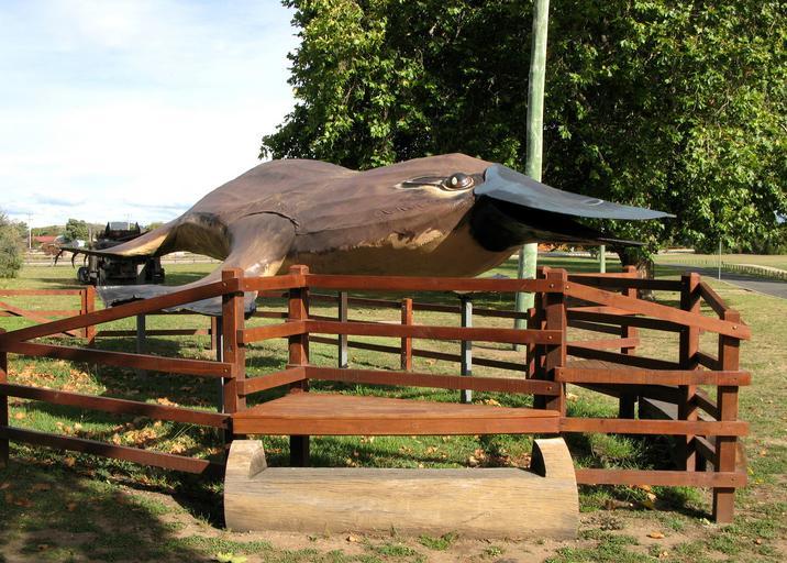 Keywords: Latrobe BigPlatypus.jpg Big Platypus at the Australian Axeman's Hall of Fame Latrobe TAS Own 2008-02-26 Stuart Edwards Big Things of Australia Platypus in art Latrobe Tasmania Statues of animals in Australia Sculptures in Tasmania