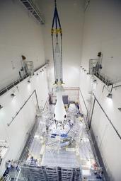Keywords: launch abort system Orion Flight Test lowered crane installation Orion spacecraft Kennedy Space Center Florida
