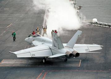 Keywords: US Navy 020415-N-5292M-003 Super Hornet prepares to launch.jpg en At sea aboard USS Abraham Lincoln CVN 72 Apr 15 2002 -- Sailors assigned to the ship s Air Department prepare to launch an F/A-18E Super Hornet while conducting flight operations in the Juan De-Fuca Straits The first fully operational squadron of F/A-18E aircraft will deploy aboard Lincoln as the Eagles of Strike Fighter Squadron One One Five VFA-115 U S Navy photo by Photographer's Mate 3rd Class Julie R Matyascik RELEASED 2002-04-15 020415-N-5292M-003 Navy http //www navy mil/view_image asp id 1285 U S Navy photo by Photographer's Mate 3rd Class Julie R Matyascik PD-USGov-Military-Navy Aboard USS Abraham Lincoln CVN-72 F/A-18 Hornet on flight decks Strike Fighter Squadron 115 United States Navy |