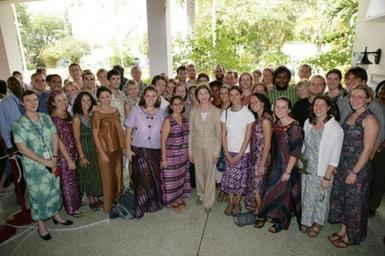 Keywords: Laura Bush with Ghana Peace Corps volunteers.jpg Laura Bush poses with Peace Corps volunteers Tuesday Jan 17 2006 at the home of the U S Ambassador in Accra Ghana to mark the 45th anniversary of the Peace Corps Ghana was the first assignment for the organization White House photo by Shealah Craighead From the http //www whitehouse gov/news/releases/2006/01/images/20060117-1_p011706sc-0521jpg-1-515h html White House website Accra in 2006 Laura Bush US Peace Corps in Ghana Photographs by Shealah Craighead PD-USGov |