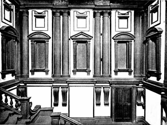 Keywords: Laurentian Library vestibule.jpg Michelangelo Vestibule of the Laurentian Library postcard cleaned up and digitally enhanced prior to WW I Author PDOld NO and its very hard to get any photo of this exceptionally important interior PD-old Michelangelo's vestibule in Biblioteca Medicea Laurenziana Historical images of San Lorenzo Florence |