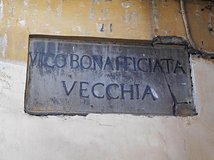 Keywords: tablet lavagna naples italy text writing street sign sign plaque Un vero e proprio scempio fu compiuto negli anni Ottanta del secolo scorso dal comune di Napoli quando furono collocate nuove tabelle viarie in marmo nelle zone più antiche della città. Si utilizzarono grossi chiodi per fissarle su quelle precedenti, in lavagna, ritenute evidentemente di nessun valore, che furono quindi lacerate prima e poi del tutto occultate. Nessuno dei grandi intellettuali che imperversano a Palazzo San Giacomo aveva quindi letto Benedetto Croce, il quale riporta la notizia che Napoli fu una delle prime città d'Italia - se non proprio la prima - ad avere un ben definito sistema toponomastico, fissato su tabelle di lavagna. E ciò intorno al 1780, regnando Ferdinando IV (che Dio guardi). Dello stesso sistema fanno parte i numeri civici in maiolica a fondo giallo e incorniciatura in lilla. Propongo questa tabella viaria nei pressi della Pignasecca, sopravvissuta miracolosamente allo scempio! Un vero e proprio scempio fu compiuto negli anni Ottanta del secolo scorso dal comune di Napoli quando furono collocate nuove tabelle viarie in marmo nelle zone più antiche della città. Si utilizzarono grossi chiodi per fissarle su quelle precedenti, in lavagna, ritenute evidentemente di nessun valore, che furono quindi lacerate prima e poi del tutto occultate. Nessuno dei grandi intellettuali che imperversano a Palazzo San Giacomo aveva quindi letto Benedetto Croce, il quale riporta la notizia che Napoli fu una delle prime città d'Italia - se non proprio la prima - ad avere un ben definito sistema toponomastico, fissato su tabelle di lavagna. E ciò intorno al 1780, regnando Ferdinando IV (che Dio guardi). Dello stesso sistema fanno parte i numeri civici in maiolica a fondo giallo e incorniciatura in lilla. Propongo questa tabella viaria nei pressi della Pignasecca, sopravvissuta miracolosamente allo scempio! |