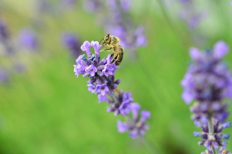 Keywords: lavender bee violet insect true lavender purple nectar blossom bloom garden soft colors bokeh bloom summer close