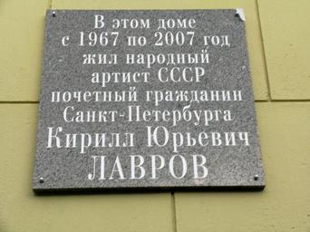 | Keywords: Lavr doska.jpg ru Памятная доска Отк ыта к 85-летию Ки илла Лав ова Сделана неб ежно с г амматическими ошибками в п авом углу об ывок плёнки запятая выбита но не пок ашена Пода очек Текст «В этом доме с 1967 по 2007 годы жил на одный а тист СССР почётный г ажданин Санкт-Пете бу га Ки илл Ю ьевич ЛАВРОВ» текст п иведён с исп авленными ошибками own 13243546A 2010-09-20 Памятная доска Отк ыта к 85-летию Ки илла Лав ова Сделана неб ежно с г амматическими ошибками в п авом углу об ывок плёнки запятая выбита но не пок ашена Пода очек Текст «В этом доме с 1967 по 2007 годы жил на одный а тист СССР почётный г ажданин Санкт-Пете бу га Ки илл Ю ьевич ЛАВРОВ» текст п иведён с исп авленными ошибками Kirill Lavrov |