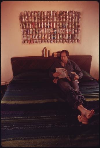 | Keywords: LAWYER STEVE NATELSON, WHO LIVES NEAR TAOS, NEW MEXICO RELAXES ON THE BED OF HIS EXPERIMENTAL HOME BUILT OF EMPTY... - NARA - 556624.jpg Scope and content LAWYER STEVE NATELSON WHO LIVES NEAR TAOS NEW MEXICO RELAXES ON THE BED OF HIS EXPERIMENTAL HOME BUILT OF EMPTY STEEL BEER AND SOFT DRINK CANS ON THE WALL IS A MURAL OF CANS LEFT EXPOSED IT WAS THE FIRST SUCH HOUSE BUILT BY THE ARCHITECT MICHAEL REYNOLDS WHO BELIEVES THIS TYPE OF HOUSING CAN BE BUILT FOR AS MUCH AS 20 LESS THAN THE CONVENTIONAL METHOD THE FEDERAL HOUSING ADMINISTRATION HAS SHOWN INTEREST IN ISSUING LOANS ON THIS TYPE OF HOUSING THE COST IS 25 000 TO 30 000 FOR A TWO-BEDROOM HOME General notes 556624 Local identifier 412-DA-14172 Environmental Protection Agency 12/02/1970 - NARA-Author Hiser David 1937- Photographer 3651517 <br /> Taos Taos New Mexico United States North and Central America inhabited place 4203050 36 4 -105 57 <br /> Still Picture Records Section Special Media Archives Services Division NWCS-S National Archives at College Park 8601 Adelphi Road College Park MD 20740-6001 06/1974 Record group Record Group 412 Records of the Environmental Protection Agency 1944 - 2006 Record group ARC 708 DOCUMERICA The Environmental Protection Agency's Program to Photographically Document Subjects of Environmental Concern compiled 1972 - 1977 Series ARC 542493 File unit File unit ARC Variant control numbers Agency-Assigned Identifier 237/12/014172<br /> NAIL Control Number NWDNS-412-DA-14172 Other versions <gallery> File LAWYER_STEVE_NATELSON _WHO_LIVES_NEAR_TAOS _NEW_MEXICO_RELAXES_ON_THE_BED_OF_HIS_EXPERIMENTAL_HOME_BUILT_OF_EMPTY _-_NARA_-_556624 tif tif File LAWYER_STEVE_NATELSON _WHO_LIVES_NEAR_TAOS _NEW_MEXICO_RELAXES_ON_THE_BED_OF_HIS_EXPERIMENTAL_HOME_BUILT_OF_EMPTY _-_NARA_-_556624 jpg jpg </gallery> NARA-cooperation PD-USGov Michael Reynolds architect Taos County New Mexico 1974 in New Mexico NARA images of New Mexico |