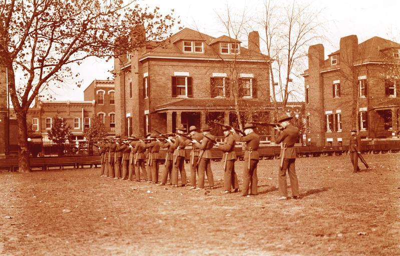 | Keywords: LC-DIG-DS-01249: U.S. Marine Barracks, 8th & I Streets, SE, Washington, D.C. Marines practice with rifles, circa 1917. Note the shops facing the barracks. (8/28/2015). LC-DIG-DS-01249: U.S. Marine Barracks, 8th & I Streets, SE, Washington, D.C. Marines practice with rifles, circa 1917. Note the shops facing the barracks. (8/28/2015). |