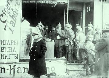 Keywords: monochrome LC-DIG-GGBAIN-19249: German Activities, World War I. Germans eating at a cigar shop in Marrggrabowa (now Olecko, Poland) during World War I. George Grantham Bain Collection. From Lot-11170 (2015/10/23). LC-DIG-GGBAIN-19249: German Activities, World War I. Germans eating at a cigar shop in Marrggrabowa (now Olecko, Poland) during World War I. George Grantham Bain Collection. From Lot-11170 (2015/10/23). |