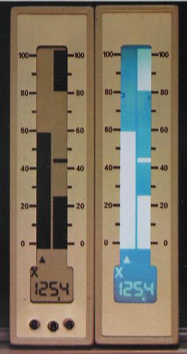 | Keywords: LCD Bargraph reflective + backlit.jpg en Liquid Crystal Display left reflective mode right transmissive mode with a cold cathode fluorescent backlight proposed for vertically-mounted measurement panels de Flüssigkristallanzeige links im Reflexionsbetrieb rechts im Transmissionsbetrieb mit einer Kaltkathodenröhre als Hintergrundbeleuchtung own BBCLCD 1979-01-20 2012070810002144 Took this picture in 1979 Recently I made a new digital picture from an old print Cc-zero Liquid crystal displays |