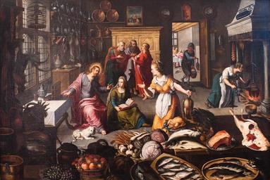 | Keywords: Le Christ chez Marthe et Marie - Joos Goemaere.jpg Artwork Creator Joos Goemare fr Scène religieuse dans un environnement domestique de cuisine ~ 1600 Oil on canvas cm 105 156 Bibliothèque et musée de la Gourmandise Belgium Ludovic Péron et VIGNERON Other versions PD-old-100 Joos Goemare Christ chez Marthe et Marie Week-end gastronomie Hermalle-sous-Huy août 2012 Musée de la Gourmandise 1600s paintings in Belgium Paintings of Jesus in the house of Martha and Mary 17th-century religious paintings in Belgium 17th-century oil on canvas paintings in Belgium Paintings of food Files by Ludovic Péron/Quality images ImageNote 1 1549 1173 427 790 5101 3410 2 Jésus Christ ImageNoteEnd 1 ImageNote 2 1326 2365 529 344 5101 3410 2 Chien Lion ImageNoteEnd 2 ImageNote 3 485 45 421 510 5101 3410 2 Perroquet ImageNoteEnd 3 ImageNote 4 2742 1135 676 1084 5101 3410 2 Marthe ImageNoteEnd 4 ImageNote 5 2104 1396 485 765 5101 3410 2 Marie ImageNoteEnd 5 ImageNote 6 931 19 1339 720 5101 3410 2 Vaisselle d ™apparat ImageNoteEnd 6 ImageNote 7 2111 2441 446 491 5101 3410 2 Légumes-racines ImageNoteEnd 7 ImageNote 8 198 880 746 931 5101 3410 2 Coq ImageNoteEnd 8 ImageNote 9 4674 733 255 854 5101 3410 2 Crémaillère ImageNoteEnd 9 QualityImage Quality images of paintings |