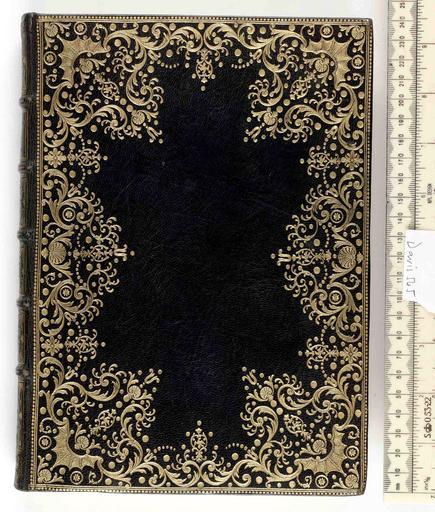 | Keywords: Le metamorfosi di Ovidio...con le annotazioni di M.G.Horologgi - Upper cover (Davis545).jpg Style Dentelle Bat wing motif Bird motif; Caption Upper cover; Colour Black; Edge Marbled under gilt exhibition history Decorative Technique Tooled in gold; Cover Material Goatskin includes morocco turkey etc Macchi states;B 1731 Nicolas-Denis le jeune succeeded his father in 1760 His work was popular so he employed many finishers which explained the varying quality of the work Derome le jeune and his family signed with different tickets R Devauchelle La reliure p 139; P Ract-Madoux Essai de classement chronologique p 382-389 S de Ricci French signed bindings p 91-91 n 45 p 120-121 n 60 p 126-127 n 63 p 128-131 n 64 'Bat' wing tools such as those in the corners were used by Pierre-Paul Dubuisson active in Paris towards the mid XVIII th century It appears generally in the corners and along panel-stamps borders adopted for Royal Almanachs decoration A similar example is reproduced in Y Devaux Dix siècles p 196 Lawrence A Miller believes this binding to be by Dubuisson object history Text 1584; Venice; Unspecified object type Cc-zero place of creation Binding France place of discovery M M Foot The Henry Davis Gift vol III London 2010 Pascal Ract-Madoux Essai de classement chronologique des étiquettes de Derome le Jeune 1989; Les Derome Jacques-Antoine Charles Nicolas et Nicolas-Denis 100 reliures dont 9 en mosaïque exhibition Bibliothèque nationale 1990 British Library image http //www bl uk/catalogues/bookbindings/LargeImage aspx RecordId 020-000002102 ImageId ImageId 40656 Copyright BL Le metamorfosi di Ovidio con le annotazioni di M G Horologgi Uploaded with GWToolset Le metamorfosi di Ovidio con le annotazioni di M G Horologgi - Upper cover Davis545 http //www webarchive org uk/bldatasets/bindings/6261_4 jpg Bookbinding 18th-century bookbinding British Library Bookbindings |