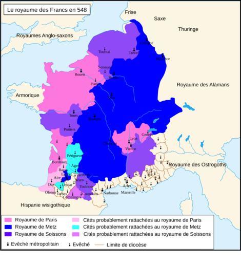 | Keywords: Le royaume des Francs en 548.svg fr Le royaume des Francs en 548 Travail personnel sur un fond de carte hydrographique de historicair D'après Michel Rouche Clovis éditions Fayard 1996 p 370 Romain0 2009-12-28 Maps of Gauls Maps of the Merovingian territory Maps of the Frankish territory SVG maps showing history in French |