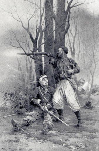 | Keywords: Le turco Ben-Kadour à Lorcy.jpg Le Turco Ben-Kadour à Lorcy bataille de Beaune-la-Rolande - 1870 tableau de Jules Monge Livre Histoire générale de la guerre franco-allemande 1870-1871 colonel Rousset éditions Jules Tallandier 1911 < 1911 Jules Monge 1855-1934 PD-old Paintings of battles Wounded soldiers in art Battles of the Franco-Prussian War Beaune-la-Rolande Military of France Beaune-la-Rolande Jules Monge Garde nationale mobile French army 1870-1914 Conflicts in 1870 Cartoons of the Franco-Prussian War French soldiers in art Paintings of Franco-Prussian War |