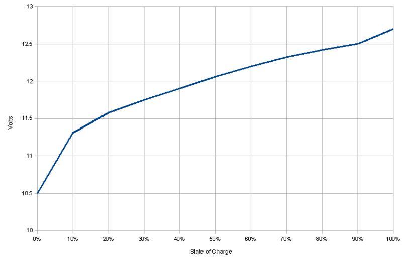 | Keywords: Lead-acid voltage vs SOC.PNG en wikipedia 2012 May 4 A lead-acid battery's open-circuit voltage can be used to estimate the state of charge in this case for a 12 volt battery Transferred from http //en wikipedia org en wikipedia; transferred to Commons by User Shashenka using http //tools wikimedia de/~magnus/commonshelper php CommonsHelper <br/> Original text I created this work entirely by myself 03 56 30 June 2010 UTC <br/> 2010 06 30 original upload date Mikiemike talk Original uploader was Mikiemike at http //en wikipedia org en wikipedia Released into the public domain by the author en wikipedia Mikiemike Original upload log en wikipedia Lead-acid+voltage+vs+SOC PNG 2010-06-30 03 56 Mikiemike 787×499× 18712 bytes <nowiki> I created this work entirely by myself ~~~~~ ~~~ </nowiki> Lead-acid batteries |