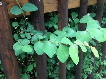 Keywords: leaf green fence rain raindrop drip green leaf plant