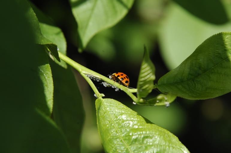 Keywords: leaf green nature ladybug insect deciduous tree green leaf leaves plant animal beetle close animal plant
