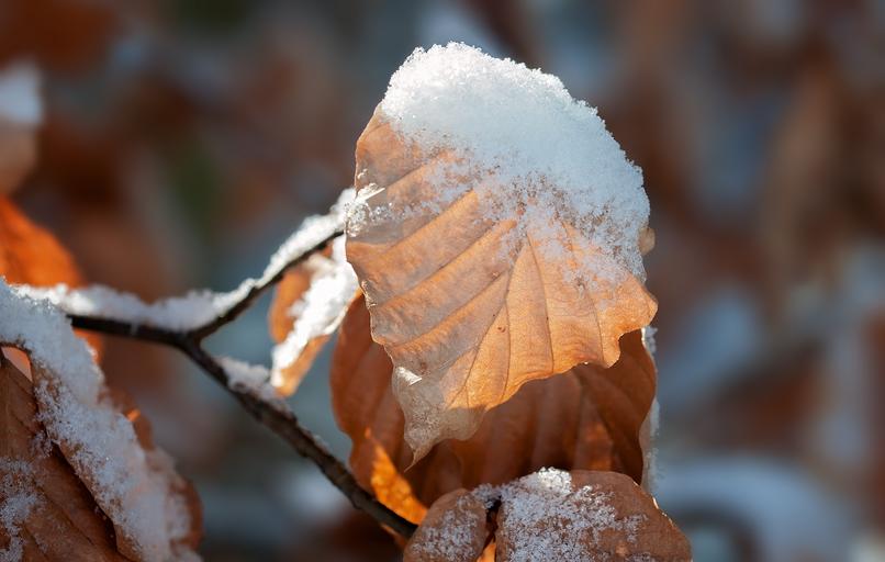 Keywords: leaf leaves dry brown winter spring snowy nature close