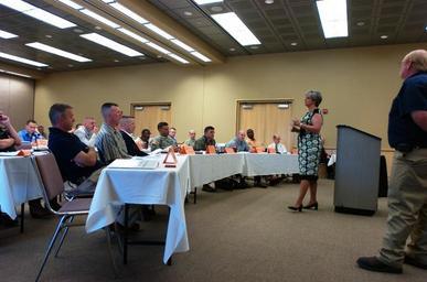 | Keywords: Learning in Austin, Texas DVIDS101754.jpg en Jane Burazer and George Calhoun directors of the waste and wastewater management systems talk to Soldiers from the 2nd Brigade Combat Team 1st Cavalry Division about what it takes to keep the fresh water flowing during a city manager's course at the Palmer Events Center in Austin Texas June 30 2008-06-30 Spc Alexis Harrison https //www dvidshub net/image/101754 101754 2008-07-09 14 09 AUSTIN TX US PD-USGov 1st Cavalry Division United States Images from DoD uploaded by Fæ |