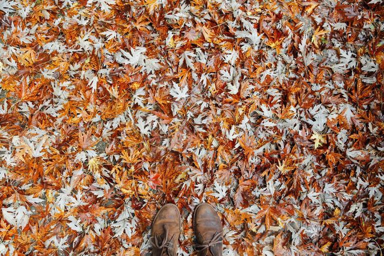 Keywords: leaves fall autumn fall leaves season orange yellow nature maple october foliage color brown pattern feet shoes ground