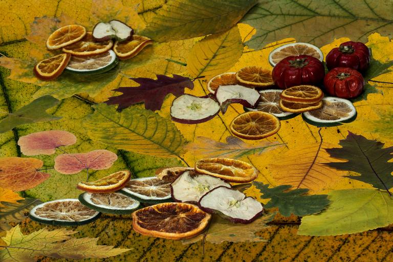 Keywords: leaves fall leaves dried citrus fruits emerge arrangement foliage design