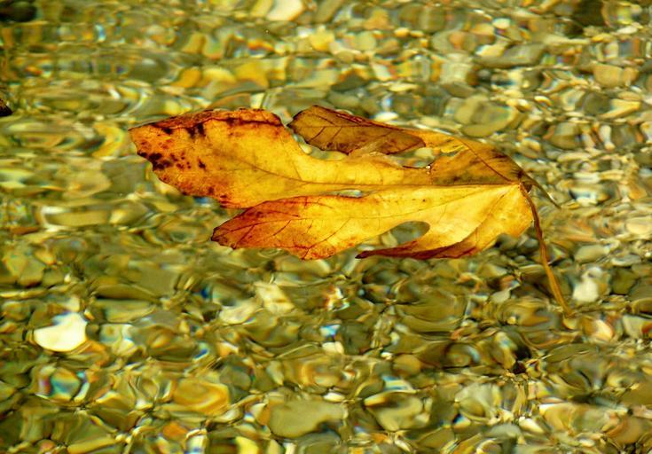 Keywords: leaves leaf autumn colorful water color waters rest river bach frisch clear transparent pebble stones nature bank surface steinchen structure swim detail photo close plant drive autumn colours golden light fall leaves sunlight illuminated