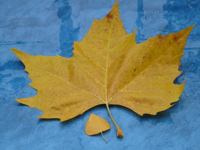 Keywords: leaves size comparison autumn fall foliage maple leaf yellow rain wet fall color poplar leaf leaf black poplar leaf