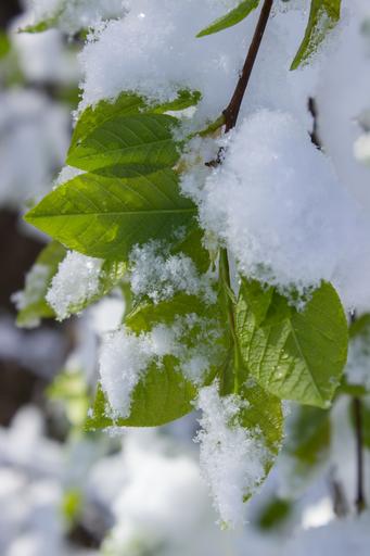 Keywords: leaves snow winter blast green spring snowy branch april weather