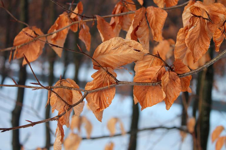 Keywords: leaves trees natural winter withered dead leaves denmark forest branches snow