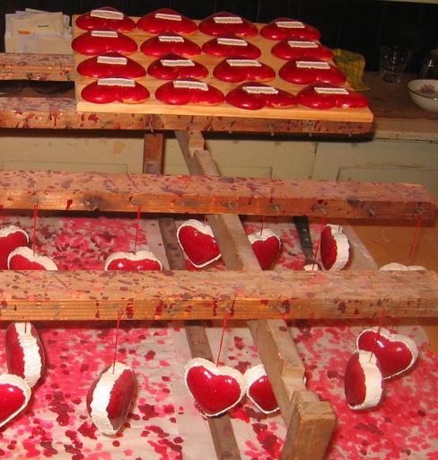 | Keywords: Lect2.JPG Lect manufacture similar to gingerbread in Radovljica Slovenia sweets for decoration - after few days not edible photo Ziga 09 25 26 February 2007 UTC 2007-02-26 own assumed Žiga Heart-shaped cookies Confectionery of Slovenia Red and white food |