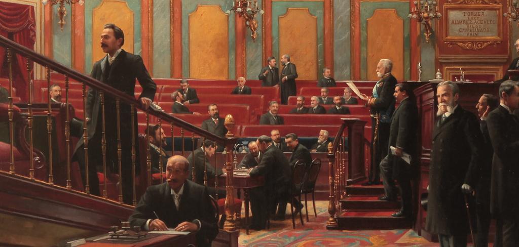 | Keywords: Lectura de un proyecto de Ley en el Salón de Sesiones, de Asterio Mañanós (Congreso de los Diputados de España).jpg El lienzo representa la ectura de un proyecto de Ley en el Salón de Sesiones del Congreso de los Diputados de España 1908 oil canvas Size cm Institution Palacio de las Cortes Madrid http //www congreso es/portal/page/portal/Congreso/Congreso/Transparencia/InfEco/PatrHist object history exhibition history credit line accession number http //www congreso es/docu/transp/patri/lectura_proy_ley jpg PD-old-100 Paintings in the Palacio de las Cortes Paintings by Asterio Mañanós Martínez in the Palace of Senate of Spain 1908 paintings in Spain Uploaded with UploadWizard |